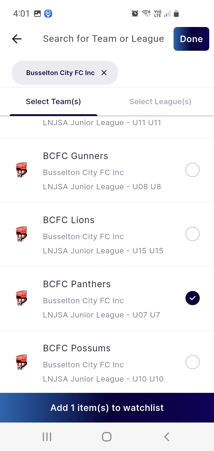 You're now taken back to your teams and leagues list. This will reflect what you've added to your watchlist.