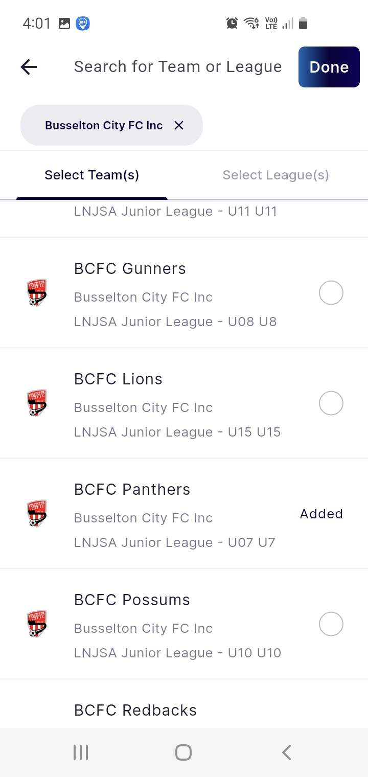 The team you chose is now added. You can repeat this if you want to add a second team. When you're finished, click "Done".