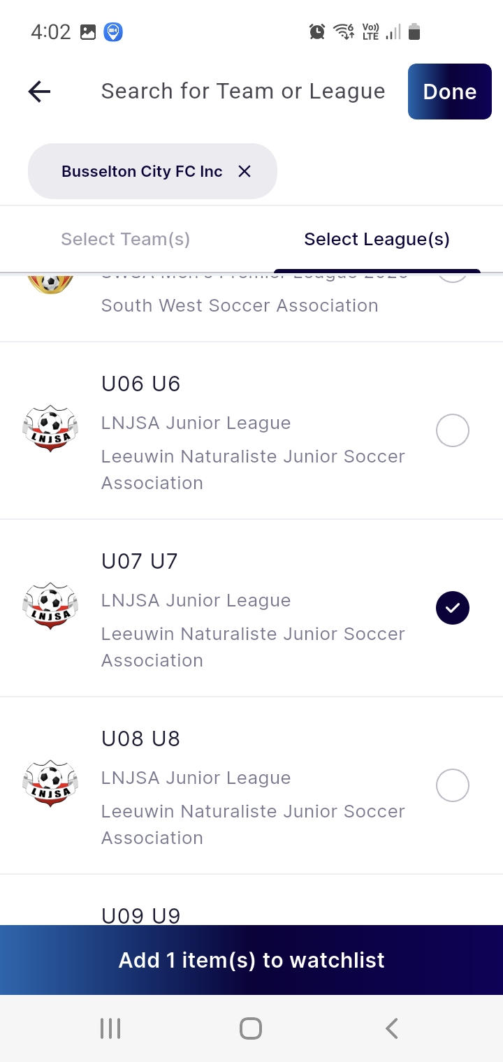 We're going to choose the "Division U07 U7 - LNJSA Junior League".