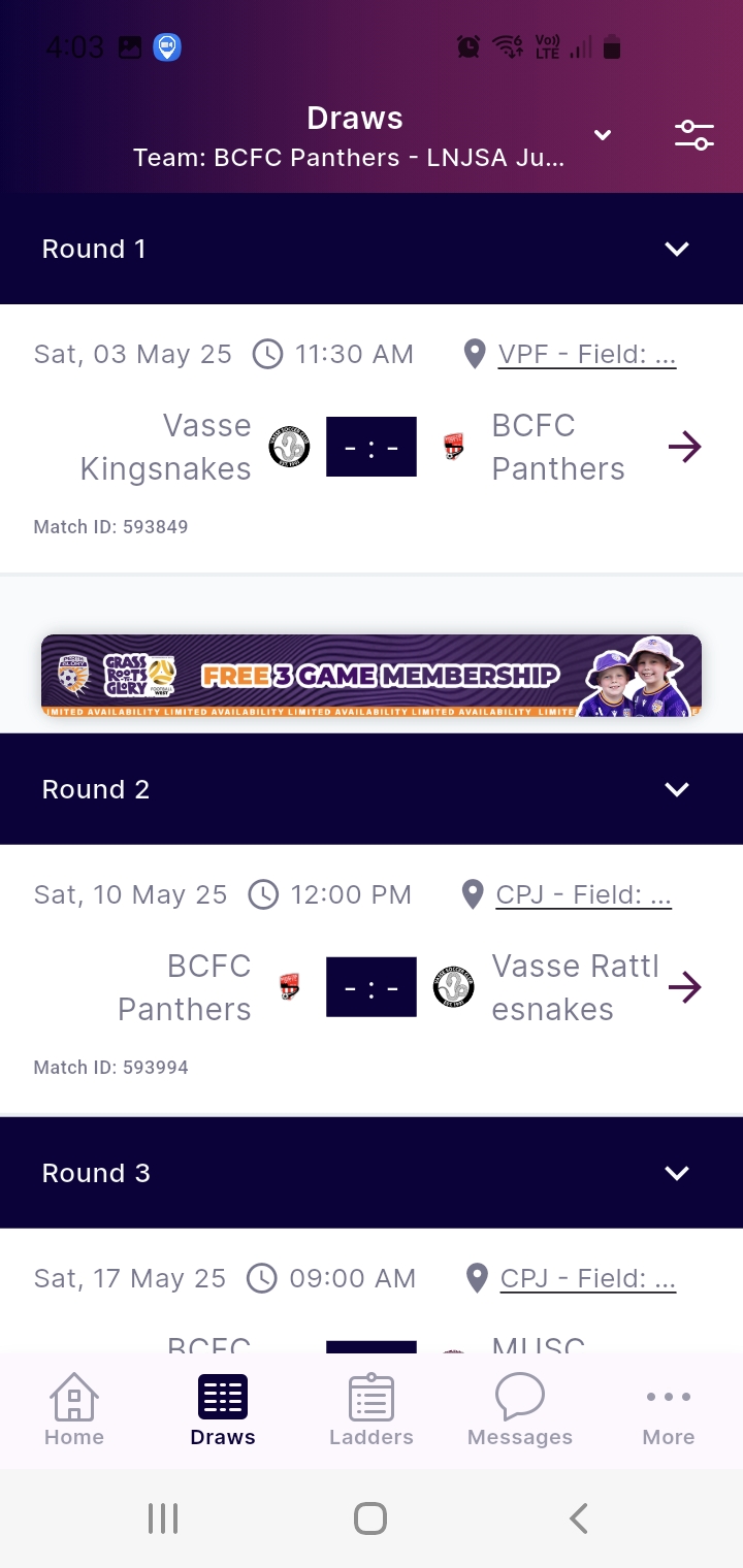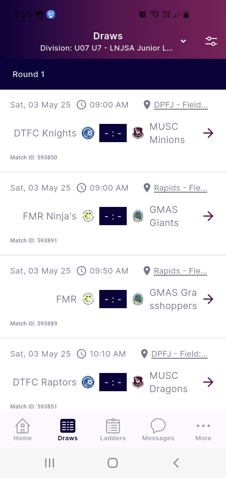And again, LNJSA will use Squadi for fixtures (and in the case of our FIFA teams), for results and ladders also.